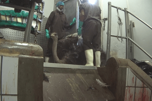 In order to use their skin in Hermès items, ostriches are also slain. PETA investigators captured footage of slaughterhouse employees strangling every bird, shocking it with electricity, and then chopping off its throat.