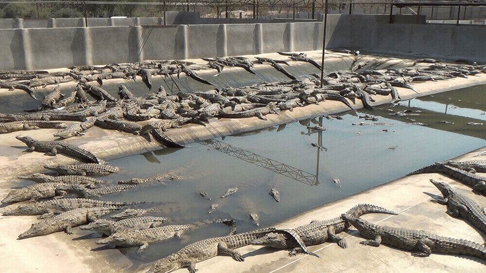 Tens of thousands of Nile crocodiles are kept in concrete pits from birth until their deaths at the site of one of the biggest exporters of crocodile skins in the world, located in Zimbabwe. Tens of thousands of Nile crocodiles are kept in concrete pits from birth until their deaths at the site of one of the biggest exporters of crocodile skins in the world, located in Zimbabwe.